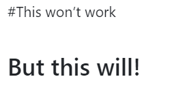 Make sure there is a gap between the hash and the word you want to make into a title!