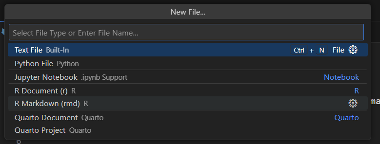 If Quarto has been installed, you should be given the option to create a ‘Quarto Document’.