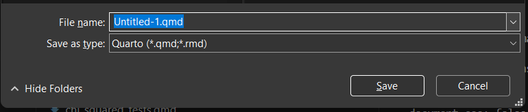 When saving, just check that the filename ends in .qmd, which stands for Quarto Markdown Document.