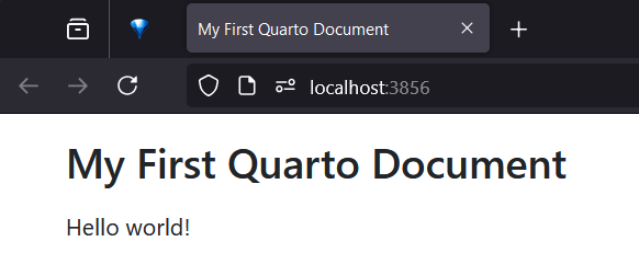 Depending on your Quarto extension settings, the previewed document will either open up within Visual Studio Code (usually as a panel on the right-hand-side of your screen), or it will open up in a new window. Opening up within VSCode should be the default behaviour for the extension.