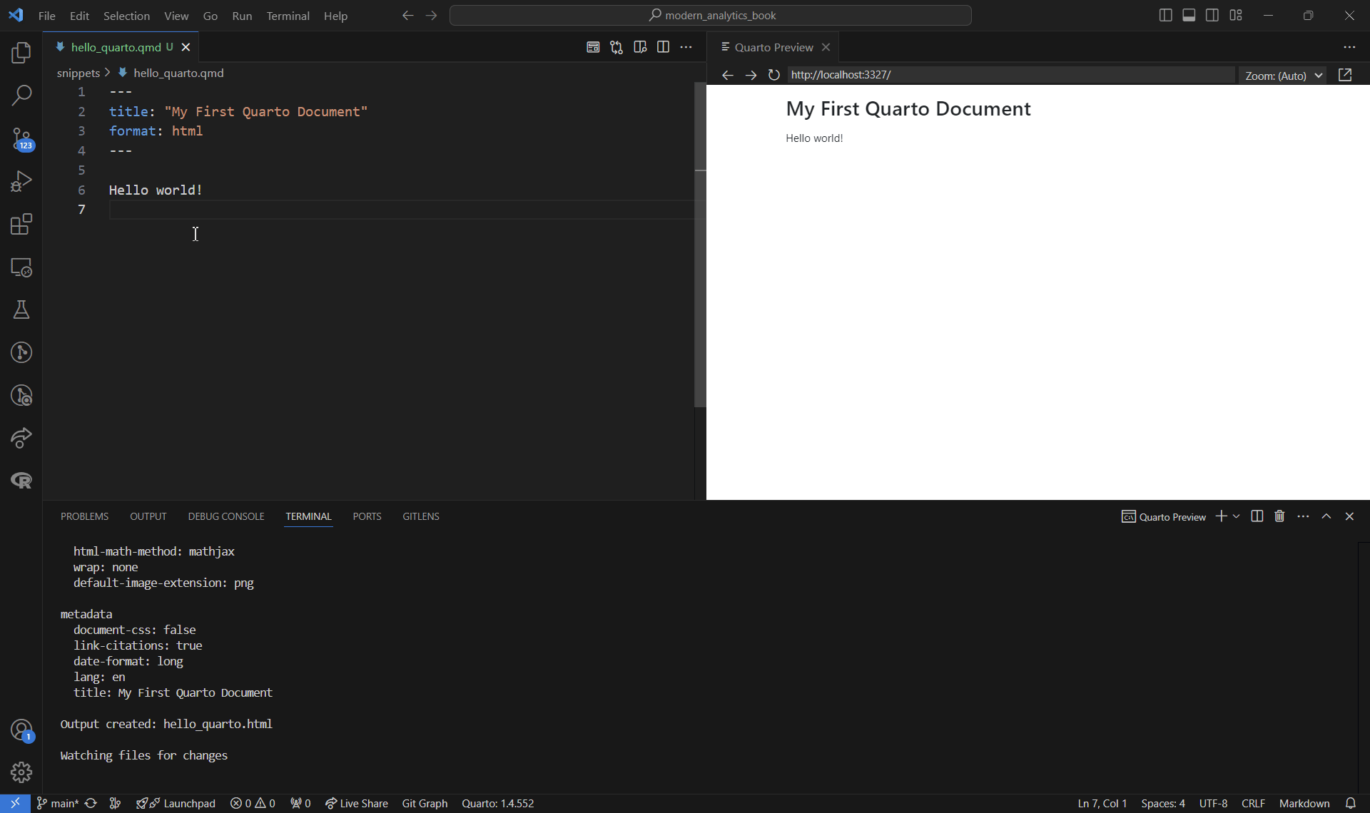Do this, then replace the ‘untitled’ in the title field with “My First Quarto Document”